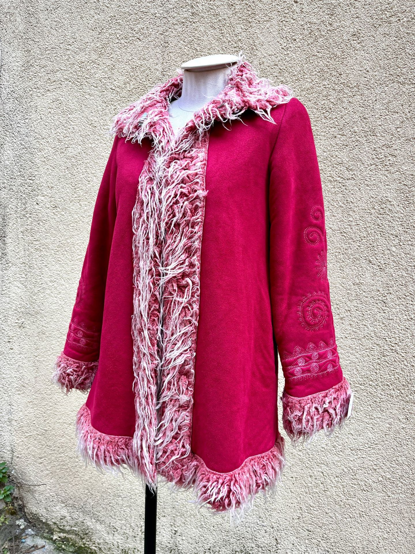 Suni kürk ve deri görünümlü, kolları işleme detaylı Benetton mont.