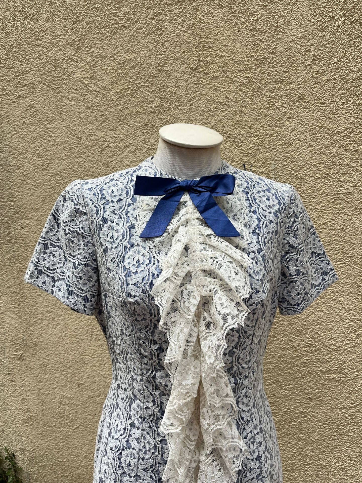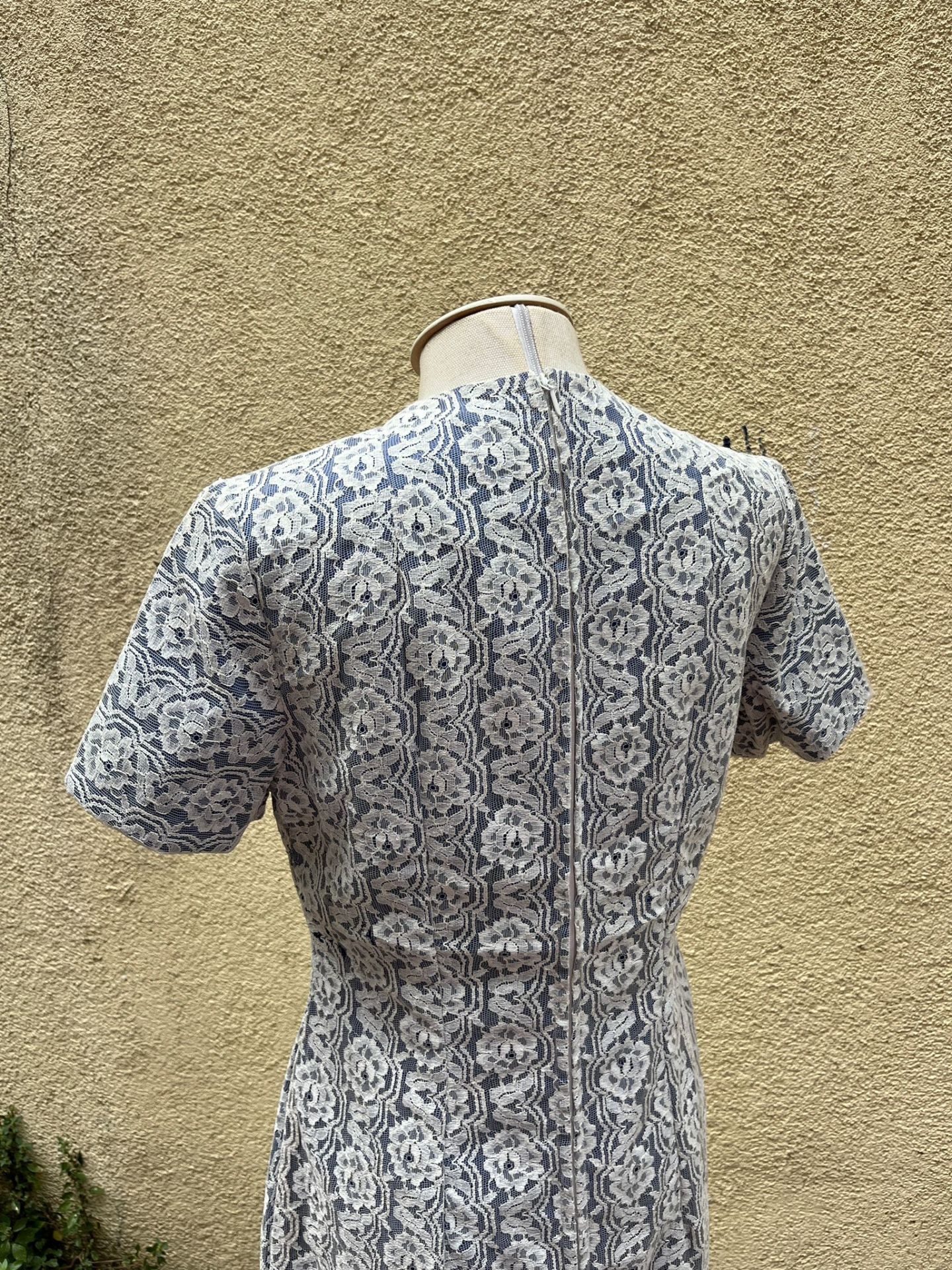 1970'li yıllar üretimi, el dikimi, astarlı, sırtta fermuar kapama dantel elbise.