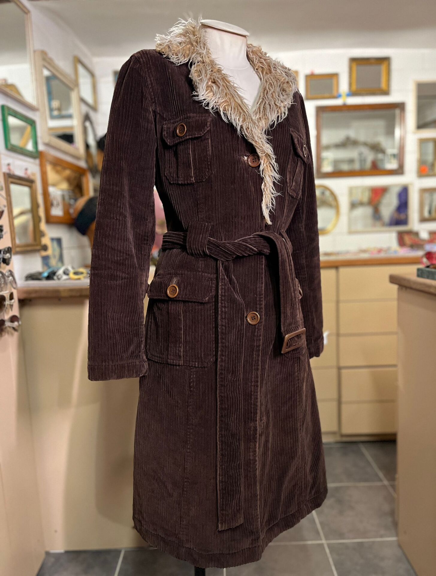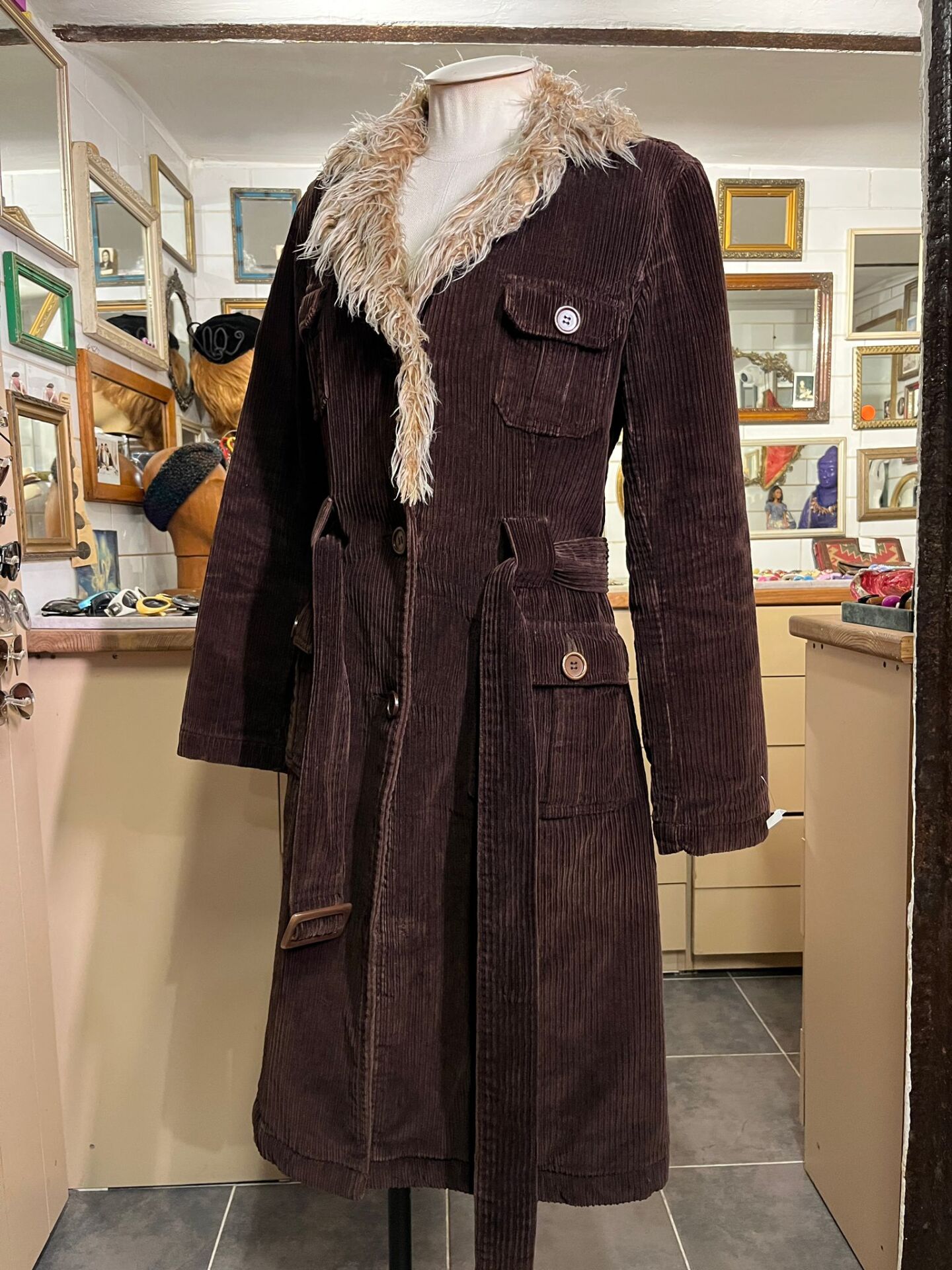 kalın fitilli kadife trençkot.