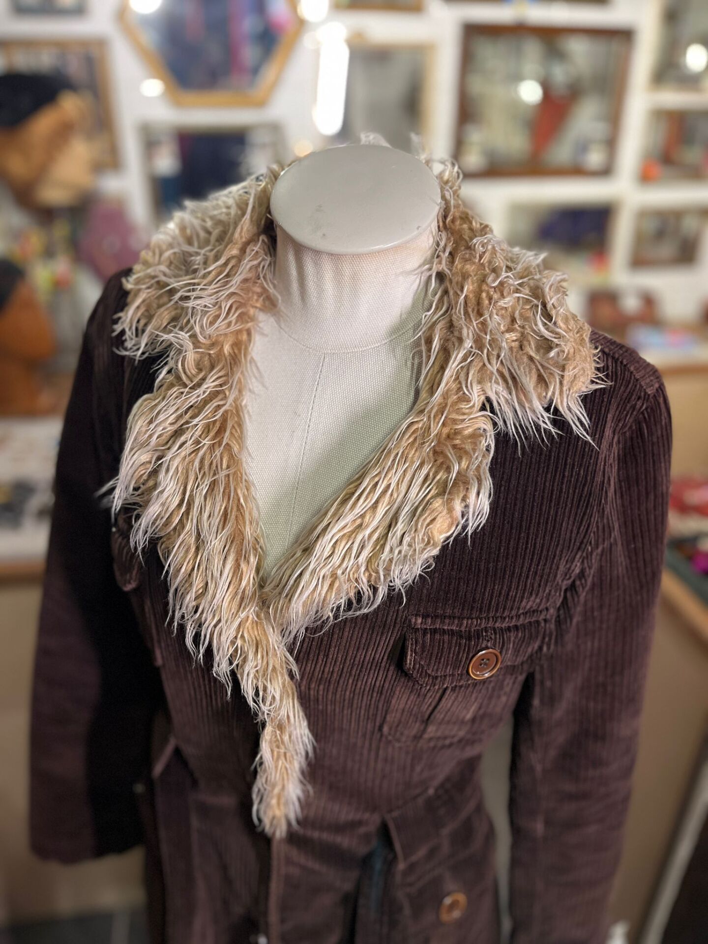 Yakası suni kürk, içi kapitone astarlı,