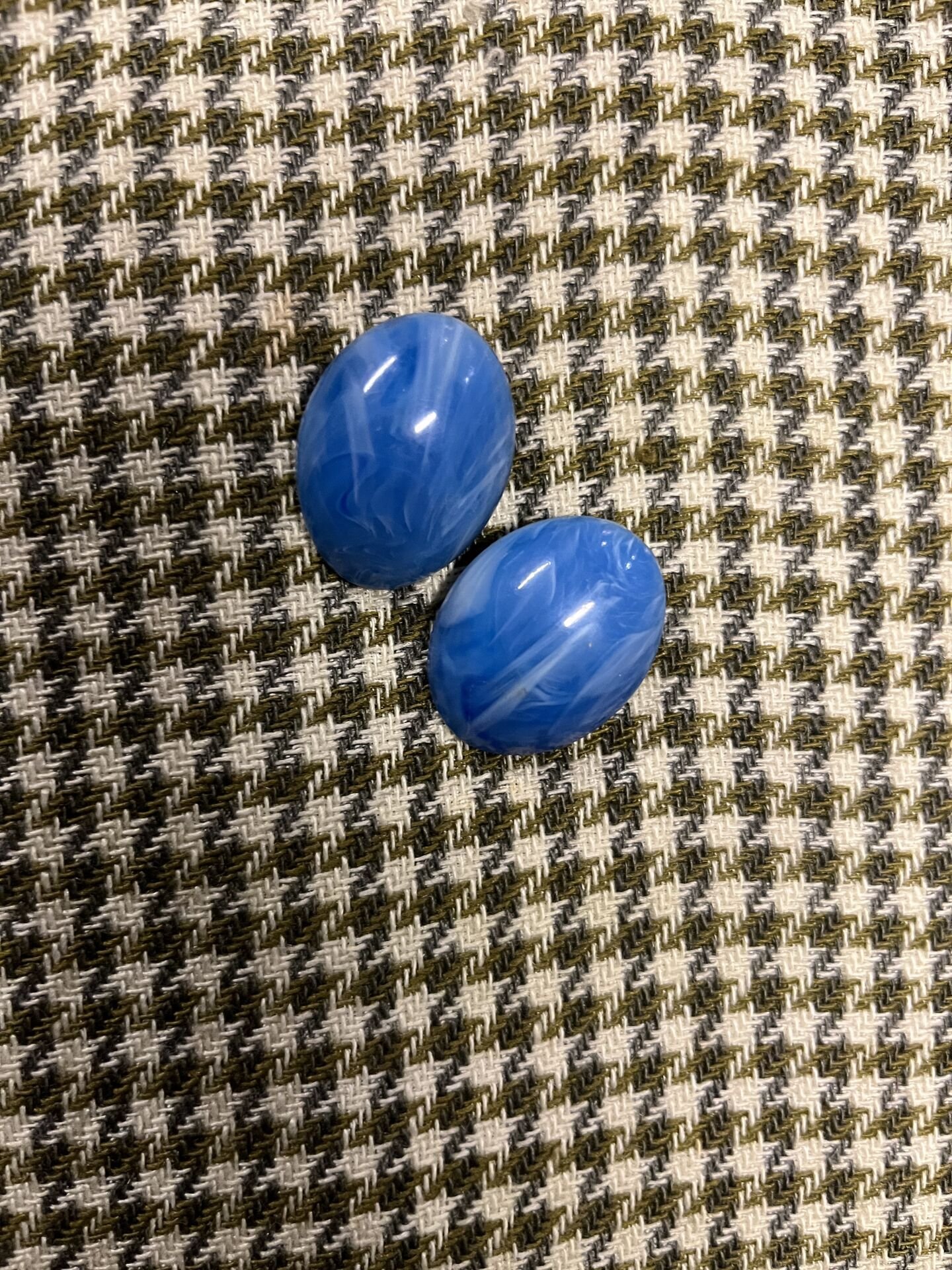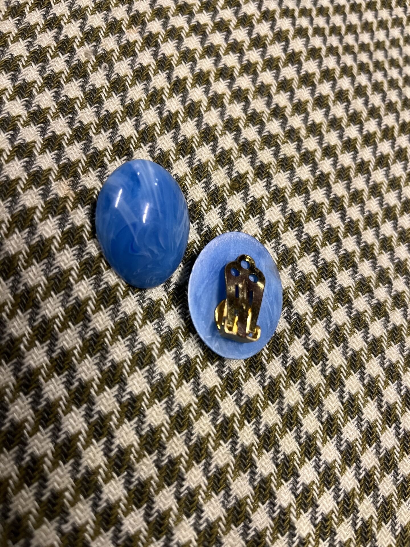 1980'li yıllar üretimi, oval formda, klipsli mavi küpe.