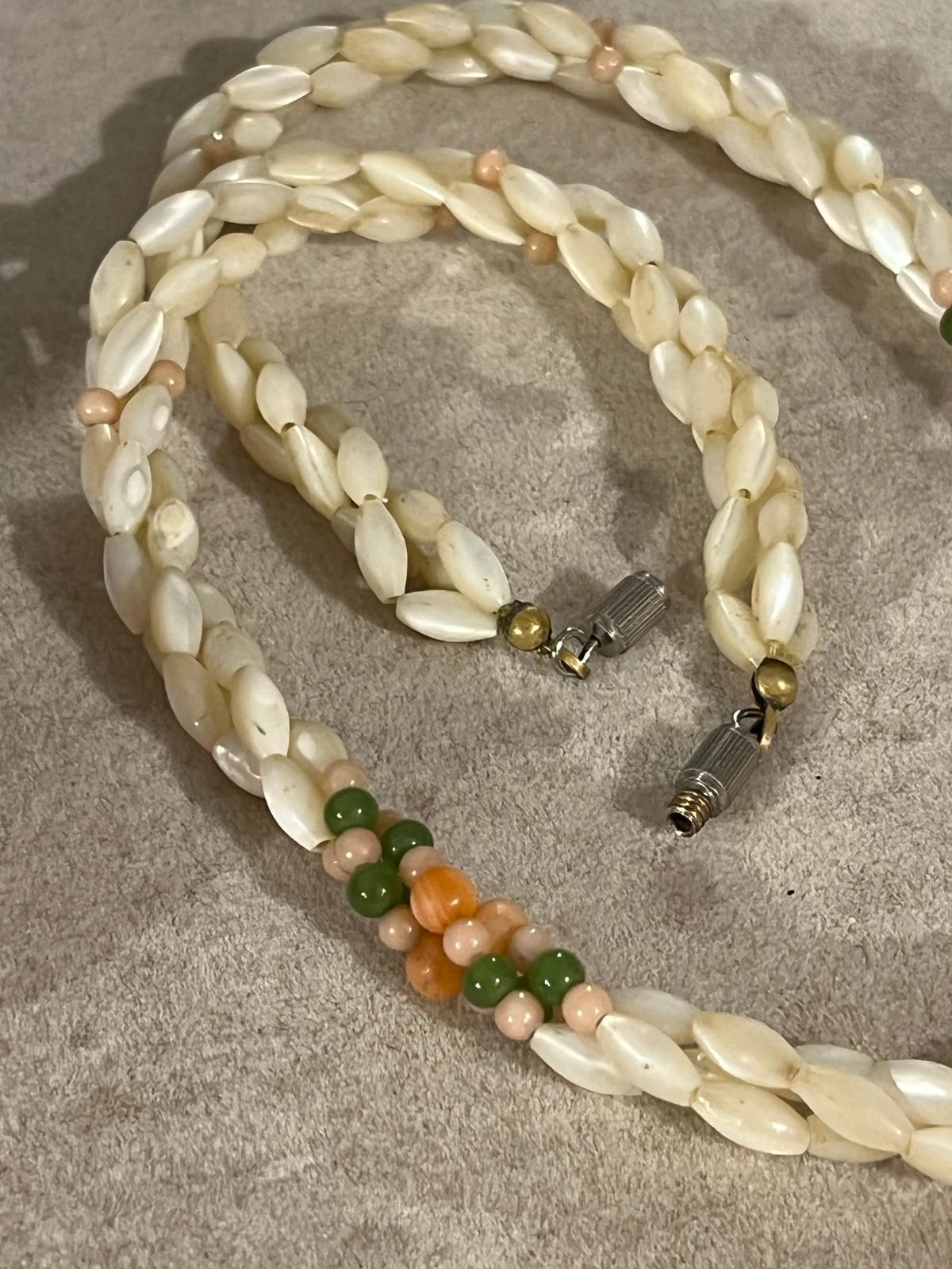 1970'li yıllar üretimi, sedef ve mercan taşlı vida kapama kolye.
