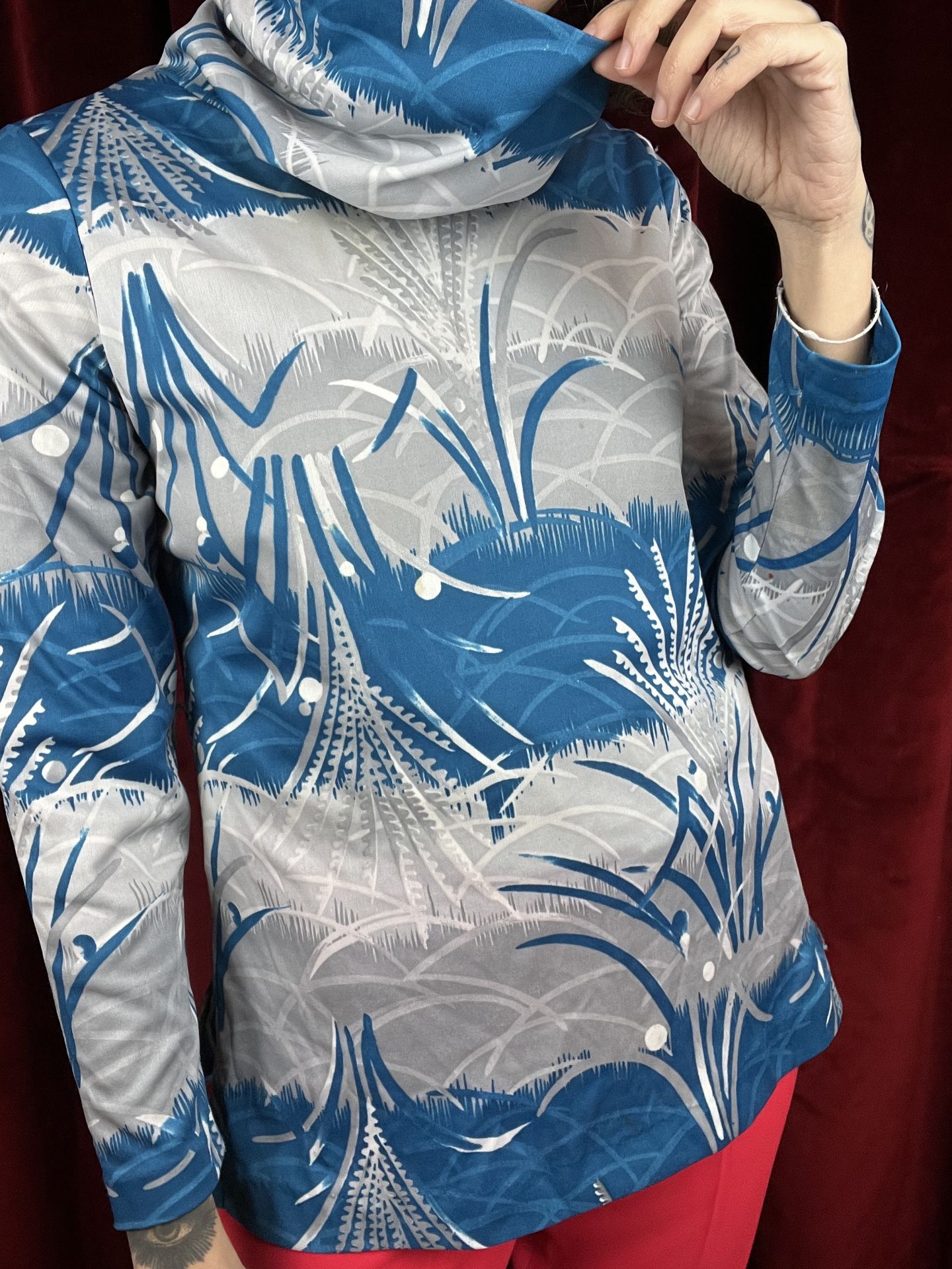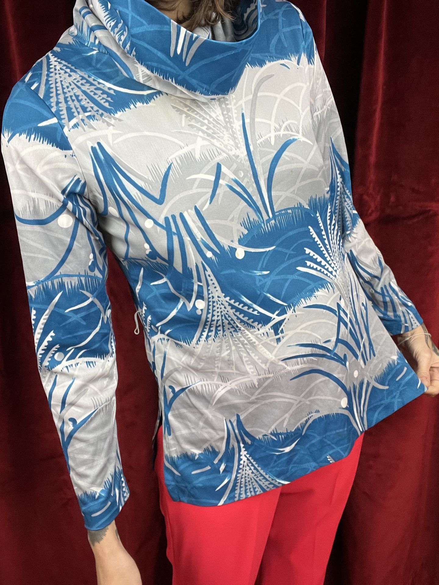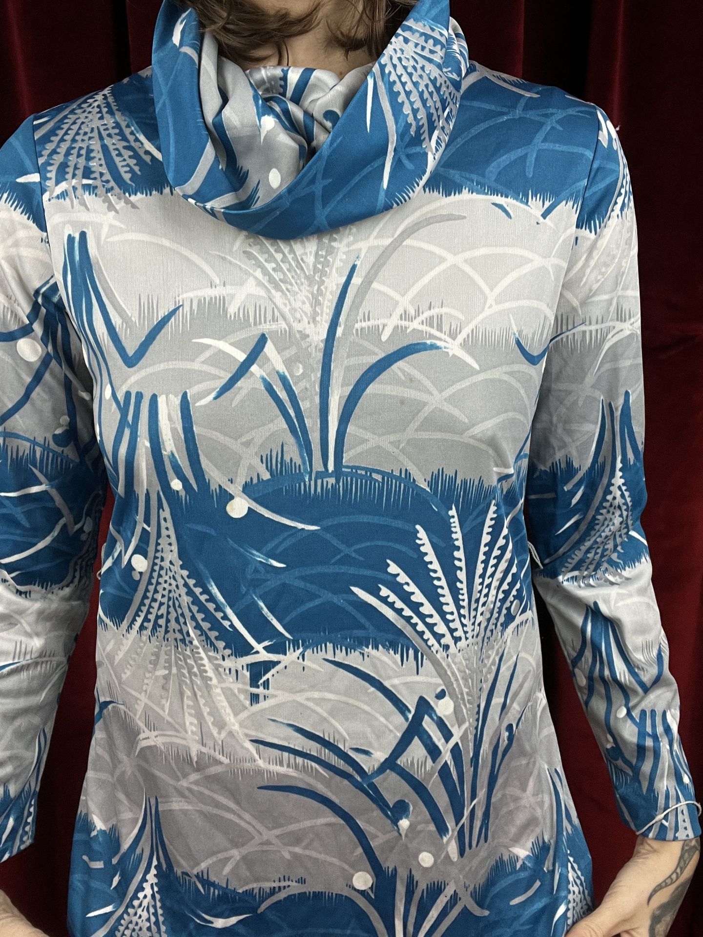 1970'li yıllar üretimi, soyut desenli, yanlarda küçük yırtmaçlı,