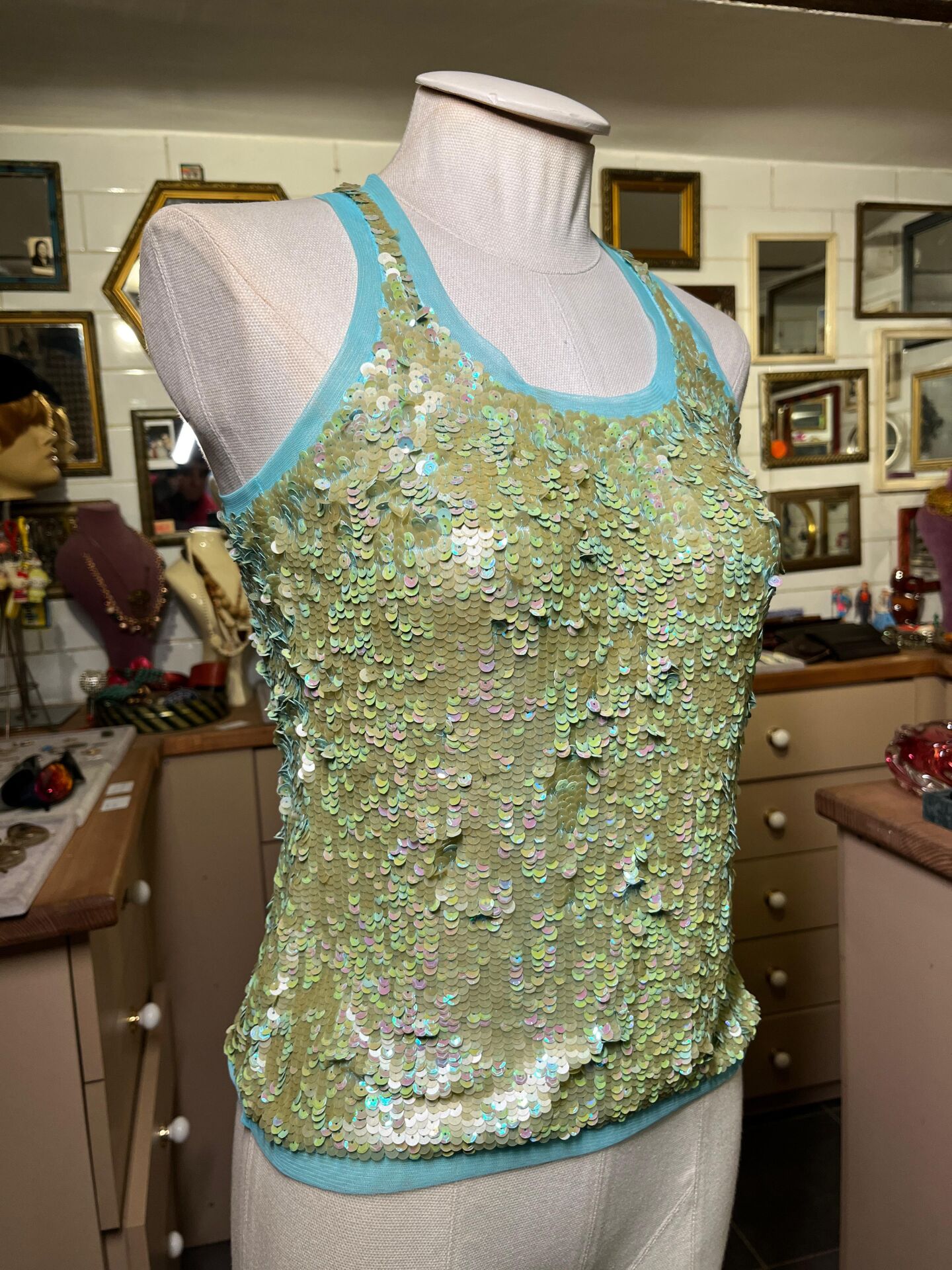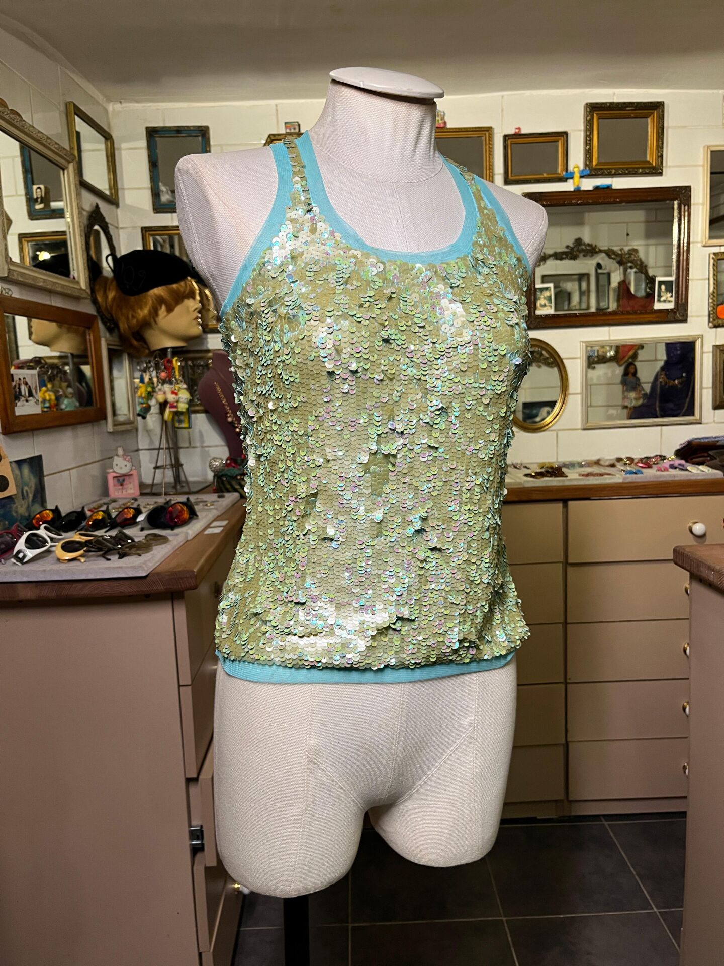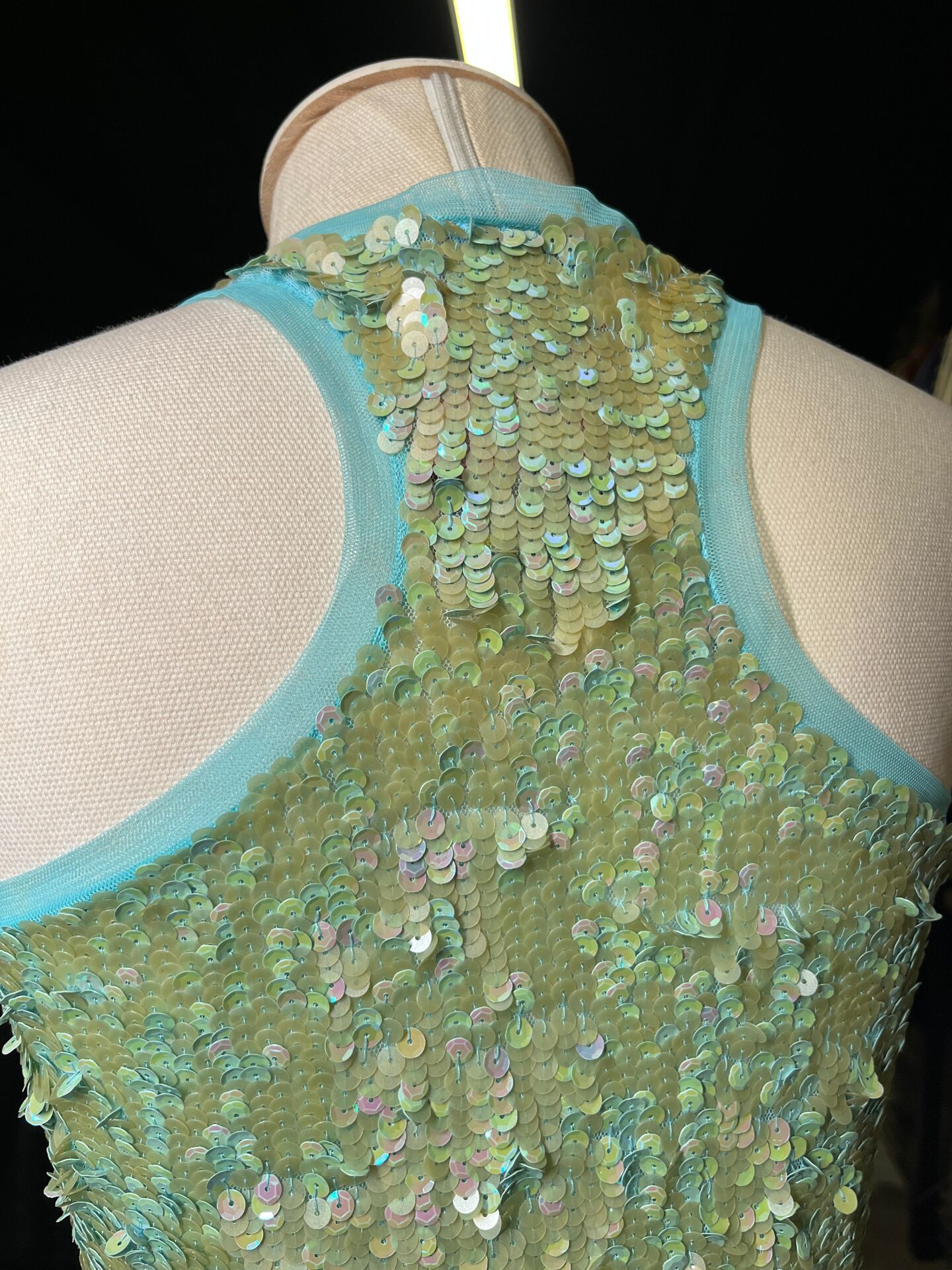 Almanya üretimi. Tül kumaş üzeri payet kaplama.