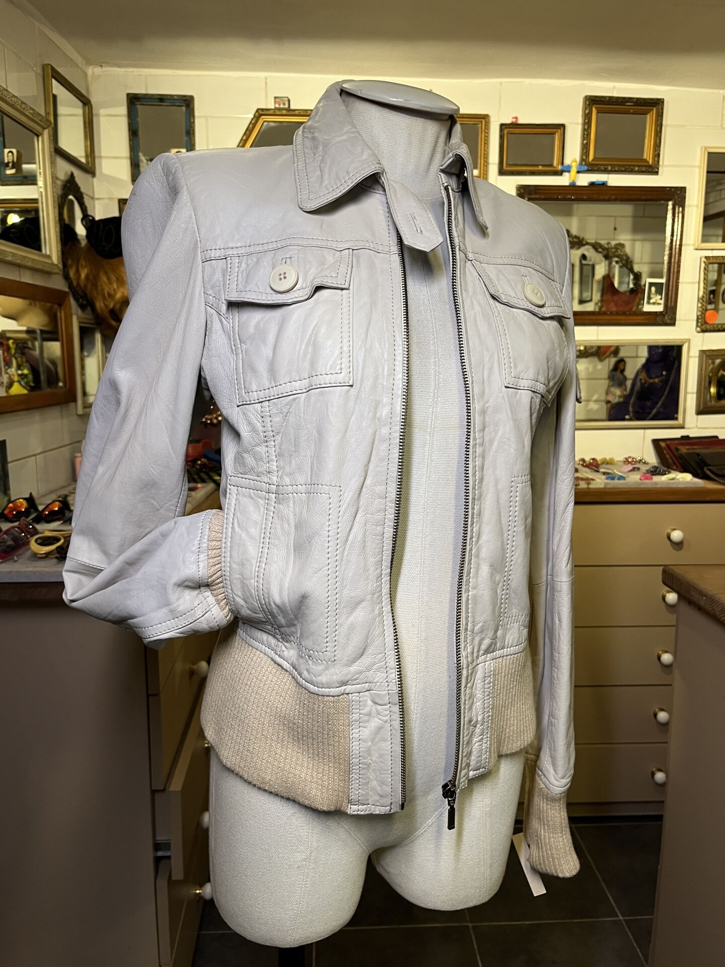 hakiki deri, manşetleri ve beli örme ribana,